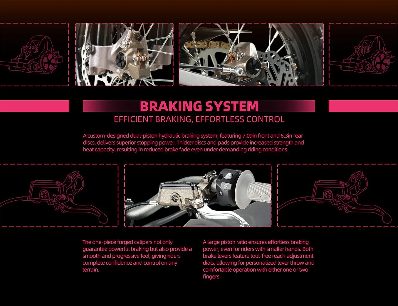 After 18 months of dedicated innovation, the Surron R&D team meticulously crafted and perfected hundreds of prototypes, achieving an exceptional lightweight design of just 83.8lbs. Every gram and millimeter reflects our commitment to precision and performance—truly "lightweight excellence in every detail, brilliance in every feature."