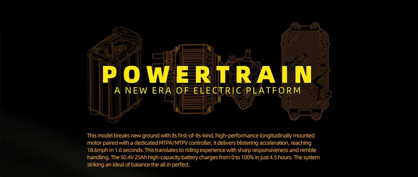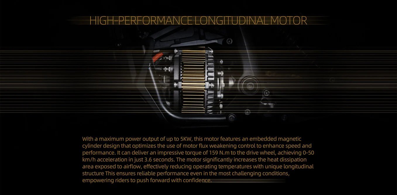 The cutting-edge power system features high-performance 21700 batteries packed with energy, advanced MTPA/MTPV controllers, and an integrated magnetic cylinder longitudinal motor. Paired with a newly designed angular reducer, it delivers smooth and direct power transmission. Striking the perfect balance between powerful performance and refined control, the system is safe, reliable, and built for effortless maintenance.