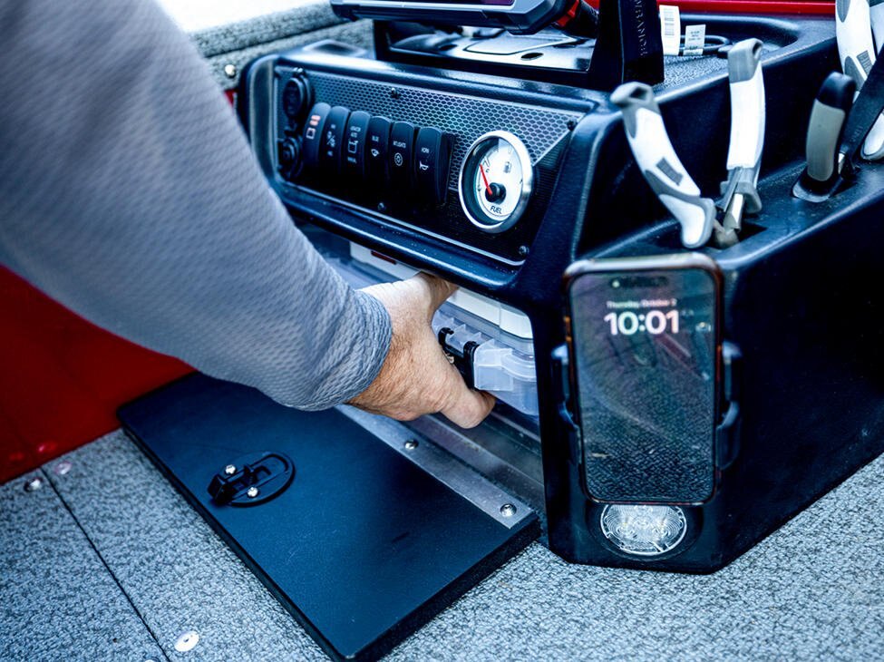 - Rangement verrouillable pour cannes à pêche bâbord et tribord